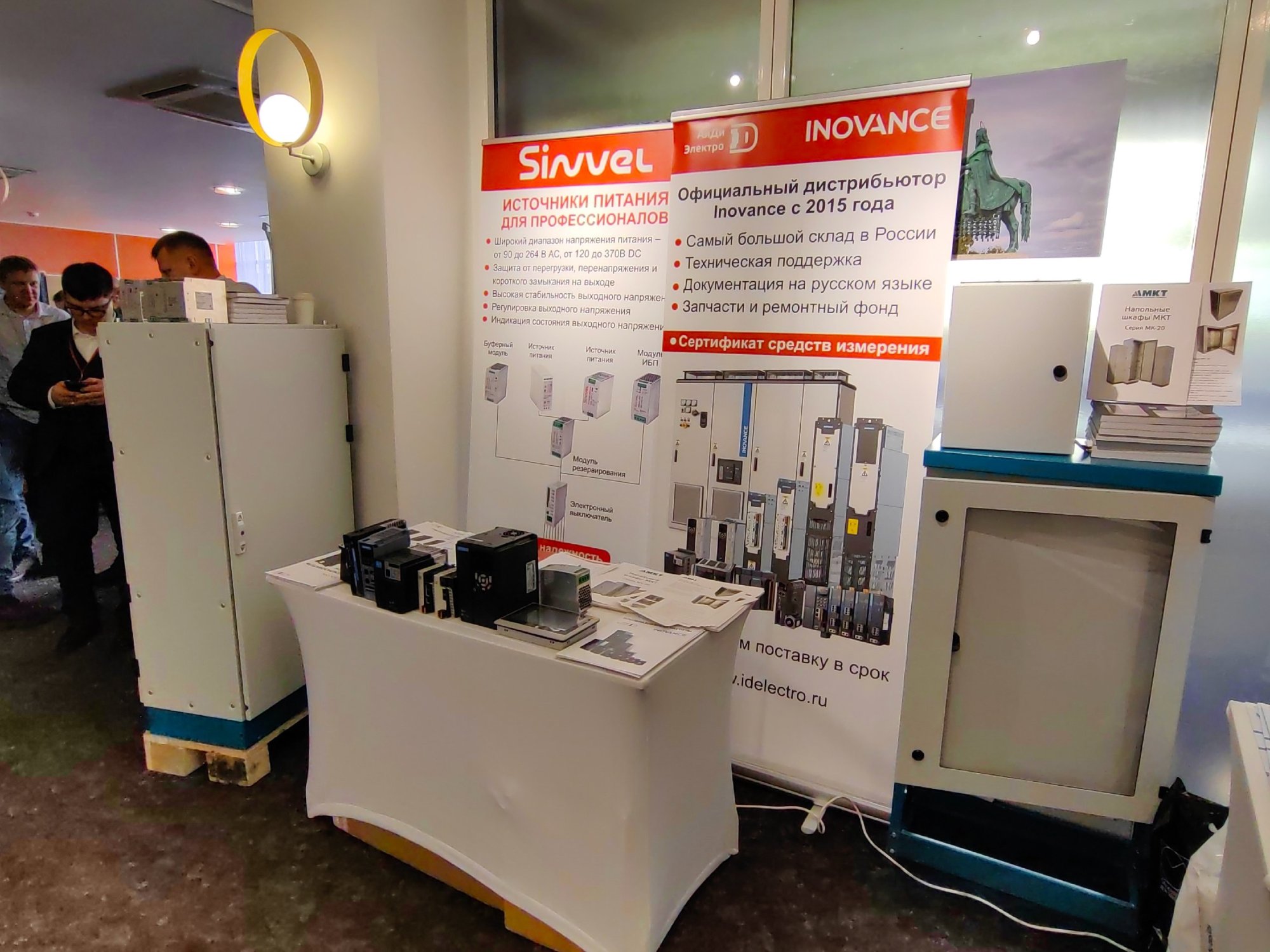 В демонстрационной зоне на стенде компании посетители смогут ознакомиться с образцами шкафов МКТ, с преобразователи частоты и компонентами промышленной автоматизации Inovance и Sinvel. Также на стенде будeт представлены образцы источников питания Sinvel вместе с модулями резервирования и модулями ИБП.